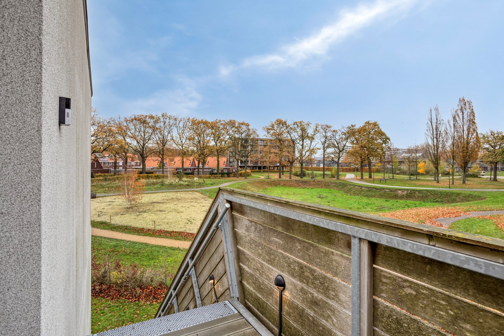 Zéér royaal balkon van ongeveer 22,5m2. Een flinke lounge-set kun je hier met gemak plaatsen om na een dag hard werken te genieten van de buitenlucht. Doordat het balkon overdekt is kun je ook met wat regen buiten zitten. Hoe fijn is dat. Het balkon is afgewerkt met houtenvlonderdelen.