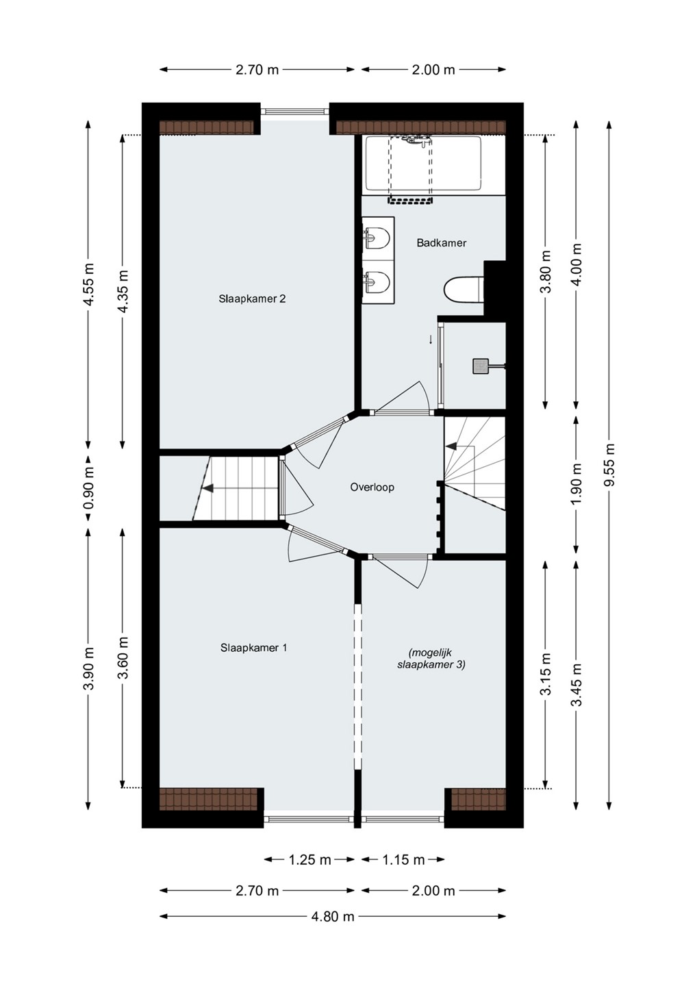 3 (waarvan 2 slaapkamers)